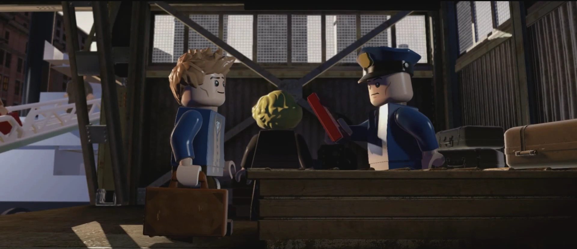 Suddenly the Niffler then jumps into a private area leading to the vault at the bottom of the bank then Newt finally ends up catching the Niffler which due to how loud he was attracted the attention of security he then apparates away with Jacob and the Niffler. Then Newt is about to obliviate Jacob when the latter punches him causing the duo to drop their suitcases. Then, Newt picks up Jacob's suitcase and Jacob to pick up Newt's suitcase. Then Newt walks away, suddenly Tina comes up from behind and apparates away with Newt asks him if he obliviated Jacob's memory who then takes him to MACUSA where they show Percival Graves the suitcase which shoots out cupcakes. Then Newt realizes he picked up Jacob's suitcase. Then the level ends with Jacob opening Newt's suitcase, releasing the creatures.