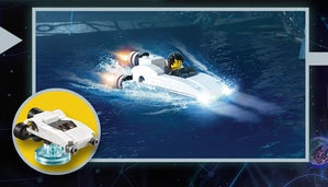 The Interdiver is a Midway Arcade vehicle in LEGO Dimensions. It is an alternate build of the G-6155 Spy Hunter, and is included in the 71235 Level Pack along with the Gamer Kid.